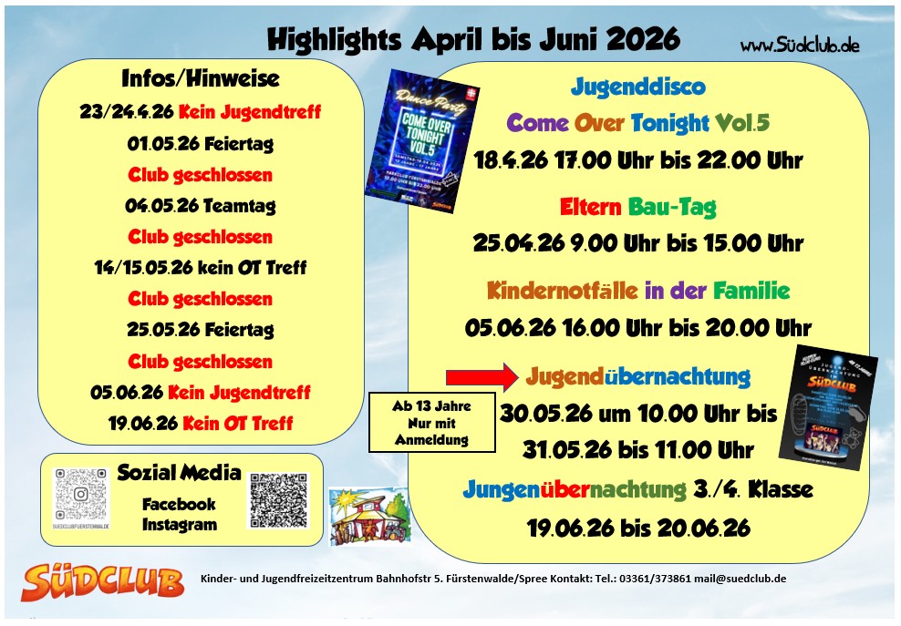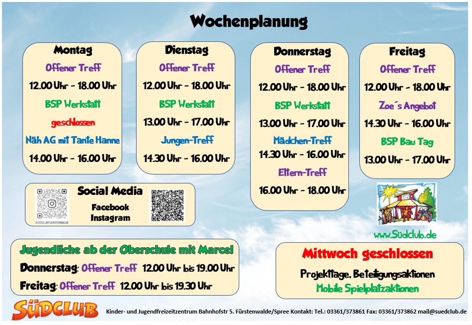 Willkommen auf der Seite vom Südclub, einer Freizeiteinrichtung für Kinder und Jugendliche in Fürstenwalde Süd. Hier erfahren Sie alles rund um die Angebote, anstehende Veranstaltungen, die Einrichtung und das Team.