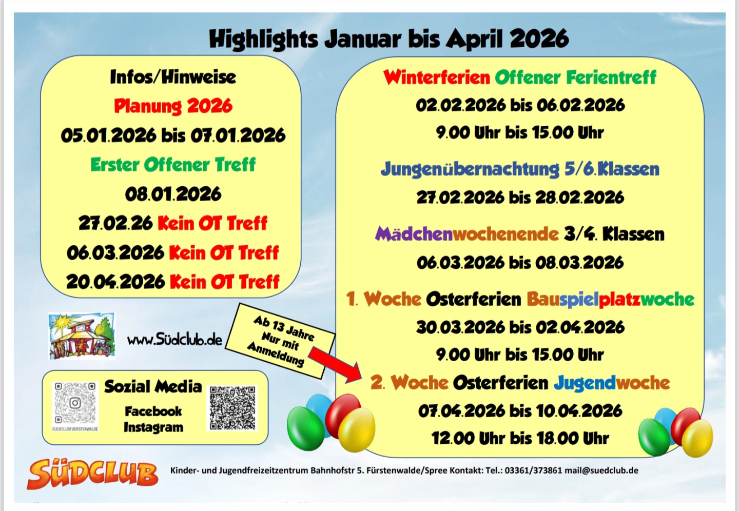 Willkommen auf der Seite vom Südclub, einer Freizeiteinrichtung für Kinder und Jugendliche in Fürstenwalde Süd. Hier erfahren Sie alles rund um die Angebote, anstehende Veranstaltungen, die Einrichtung und das Team.